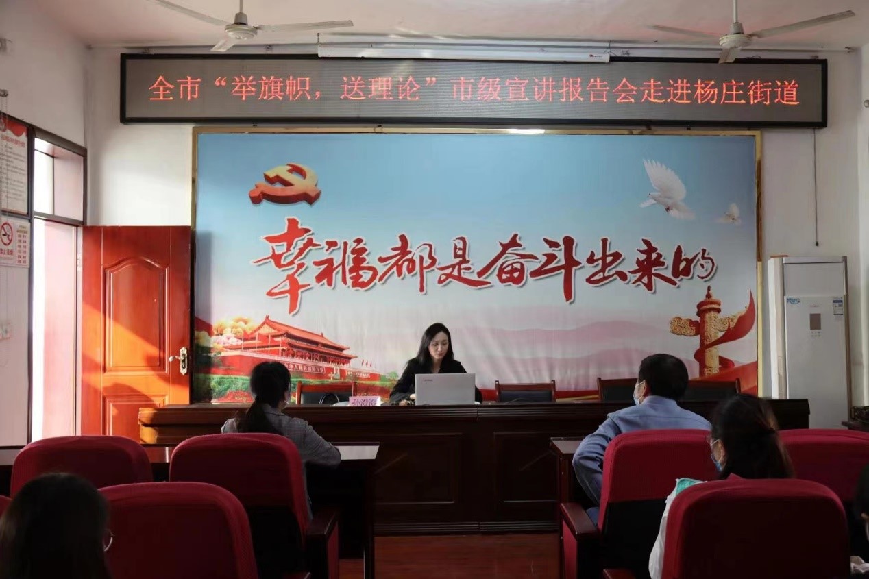 为把学习贯彻习近平总书记在省部级主要领导干部专题研讨班上重要讲话精神、《习近平谈治国理政》第四卷不断引向深入。pg娱乐电子游戏官网入口刘奔前和孙澄澄两位老师受到中共淮北市委宣传部中共淮北市委讲师团的指派,分别走进东街道和杨庄街道开展“举旗帜 送理论”专题宣讲活动。