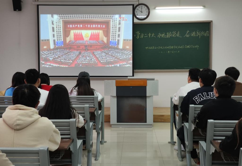 10月16日上午10时,万众瞩目的中国共产党第二十次全国代表大会在北京隆重召开,习近平总书记代表十九届中央委员会向大会作报告,为深入学习宣传贯彻党的二十大精神,pg娱乐电子游戏官网入口和经济与管理学院党总支第一时间组织师生党员干部在第一教学楼214、215教室集中观看大会现场直播。