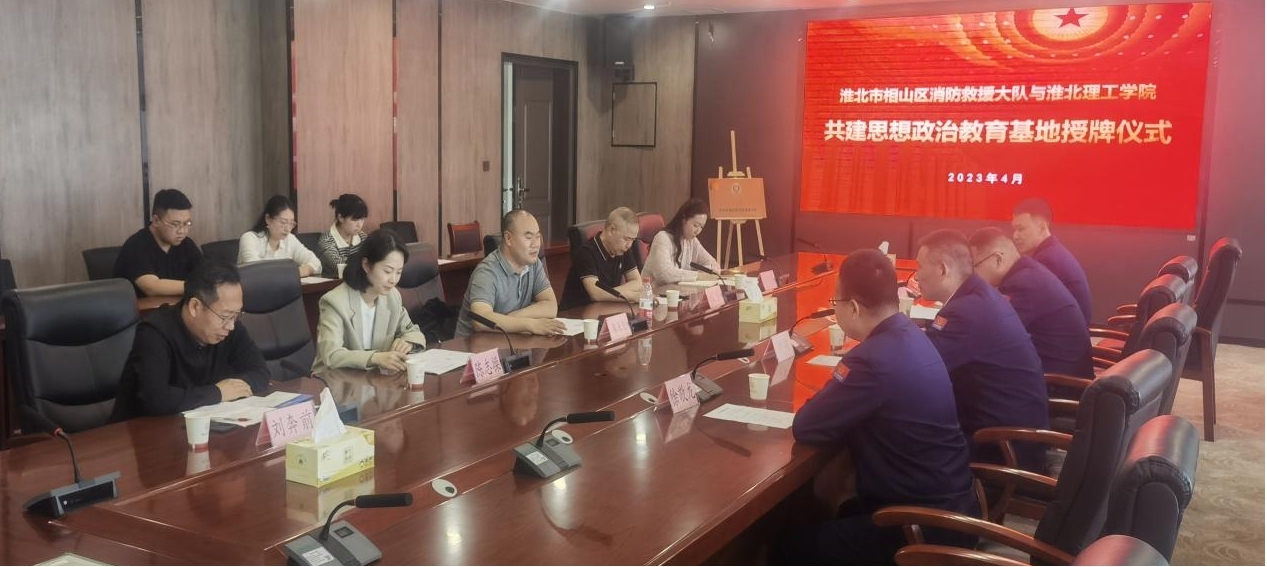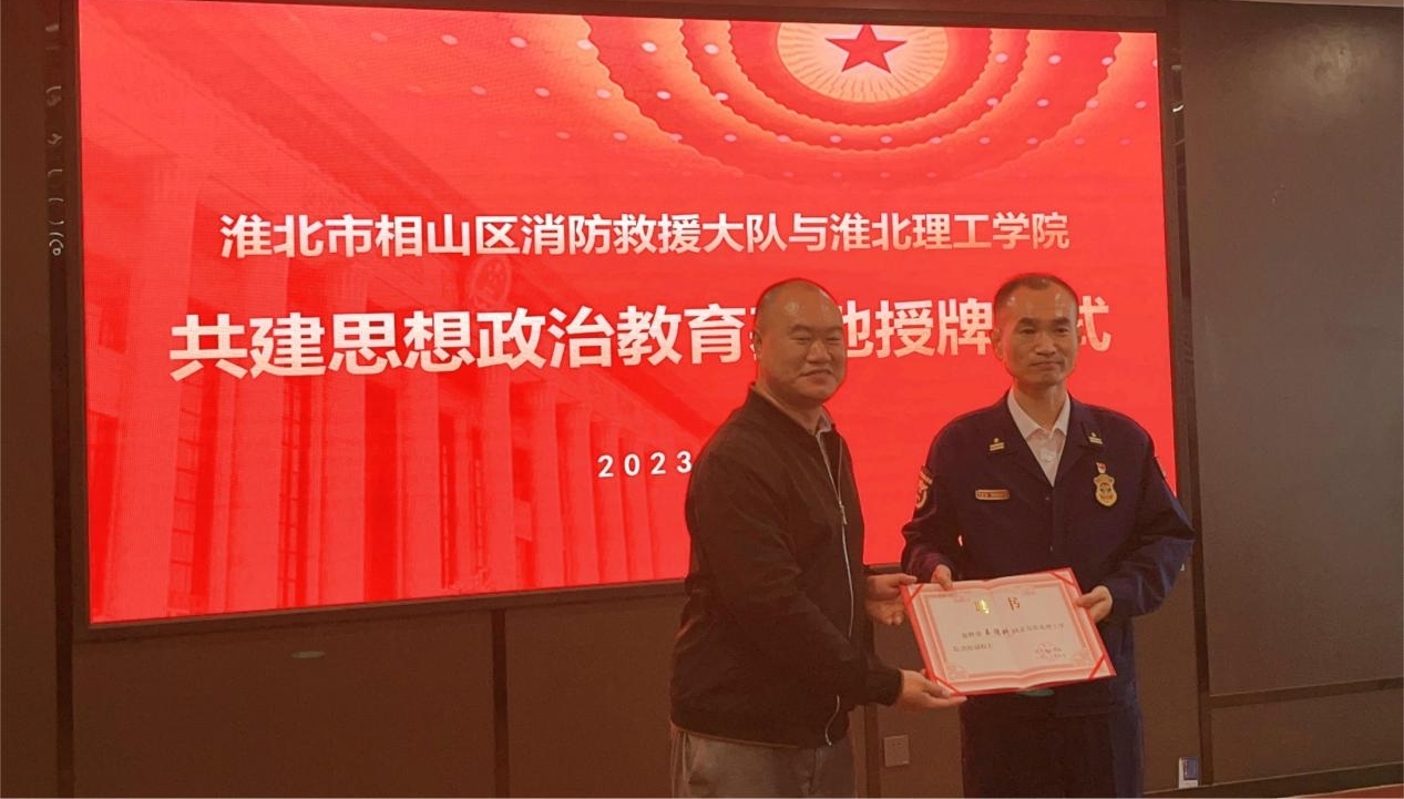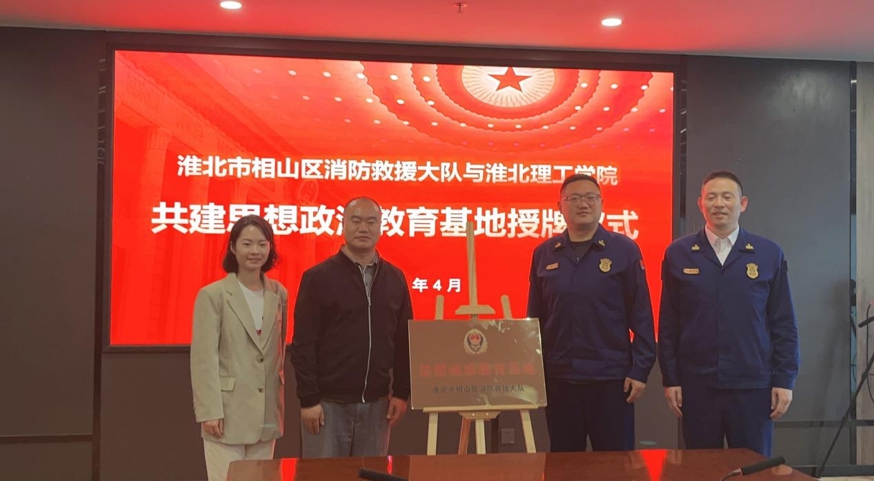 为积极贯彻落实习近平总书记关于“大思政课”建设的重要指示,扎实推进思想政治教育实践基地共建工作走深走实。4月20日下午,淮北市相山区消防救援大队走进pg娱乐电子游戏官网入口开展结对共建暨“思想政治教育基地”授牌仪式。pg娱乐电子游戏官网入口副校长郑来纪、后勤处处长程坚出席活动,此次活动由pg娱乐电子游戏官网入口院长助理陈志操主持,pg娱乐电子游戏官网入口全体教师参加活动。