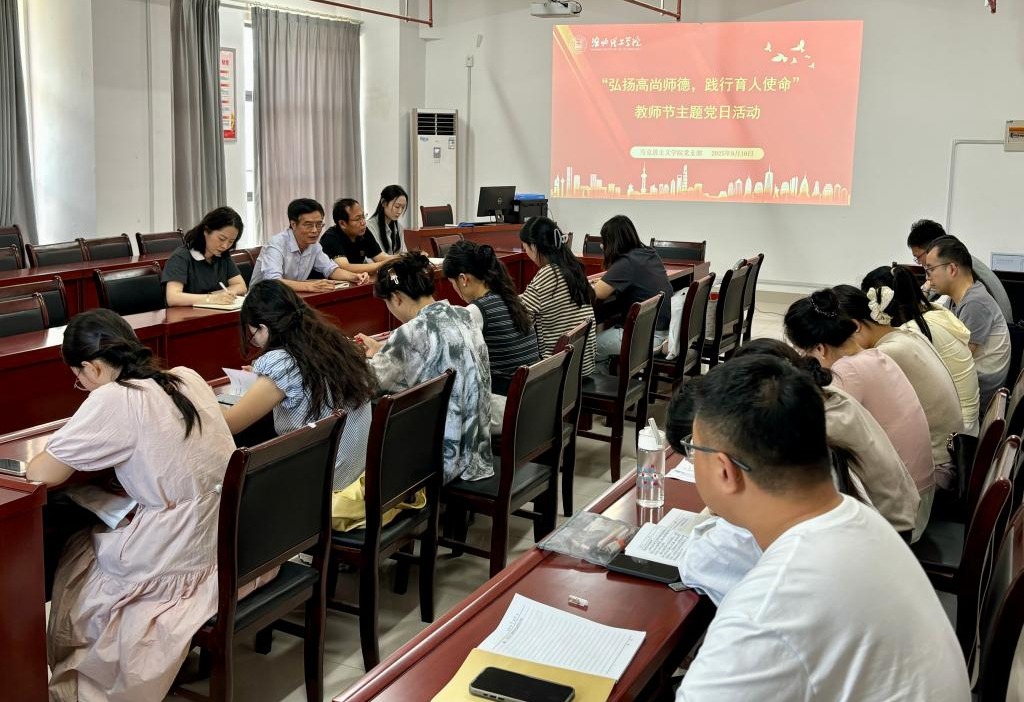 9月10日,为庆祝第41个教师节,pg娱乐电子游戏官网入口党支部在214会议室举办“弘扬高尚师德,践行育人使命”主题党日活动。活动由党支部书记石振宝主持,全体教师党员参会。