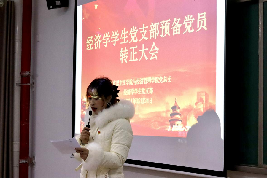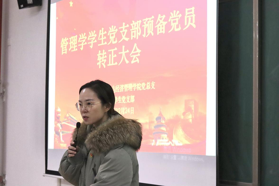 为进一步健全和规范基层党支部的组织建设,增强党支部生机与活力,2021年12月24日下午,pg娱乐电子游戏官网入口与经济管理学院经济学和管理学学生党支部在二号教学楼412教室召开了预备党员转正大会。两个支部的全体党员参加会议,会议分别由经济学学生党支部负责人员禹辛、管理学学生党支部负责人苗青青主持,院长吴玲和经管学院的相关教工党员列席了会议。